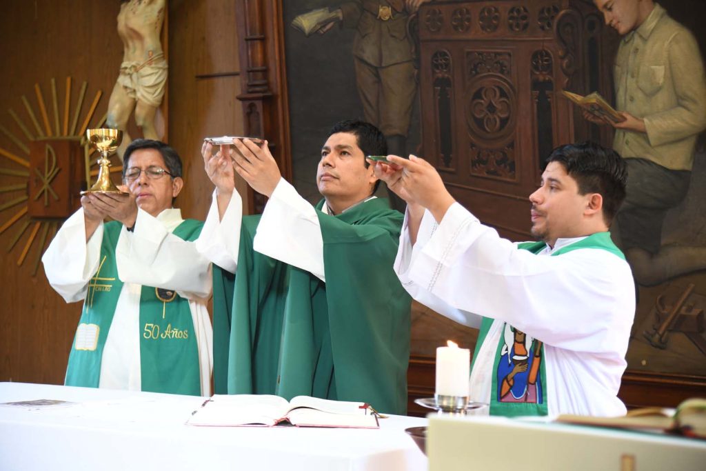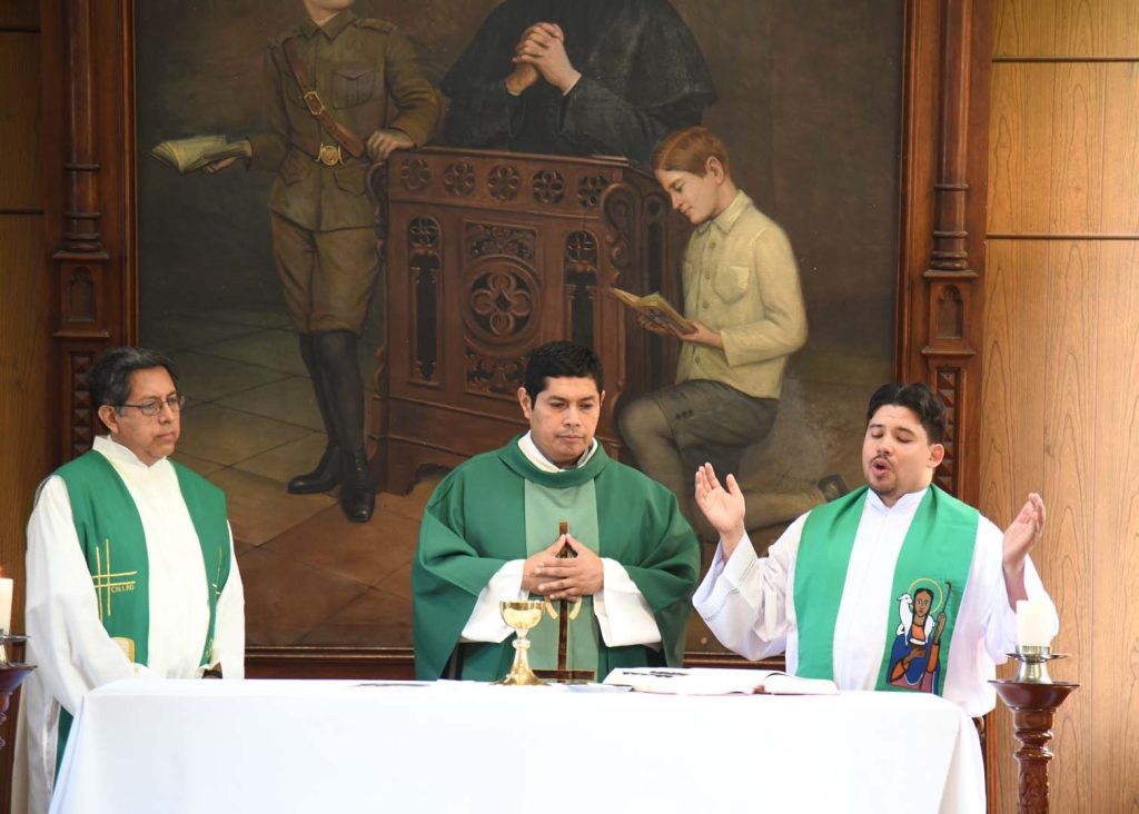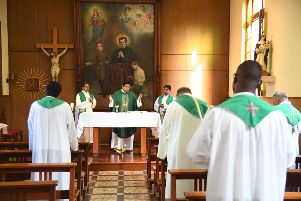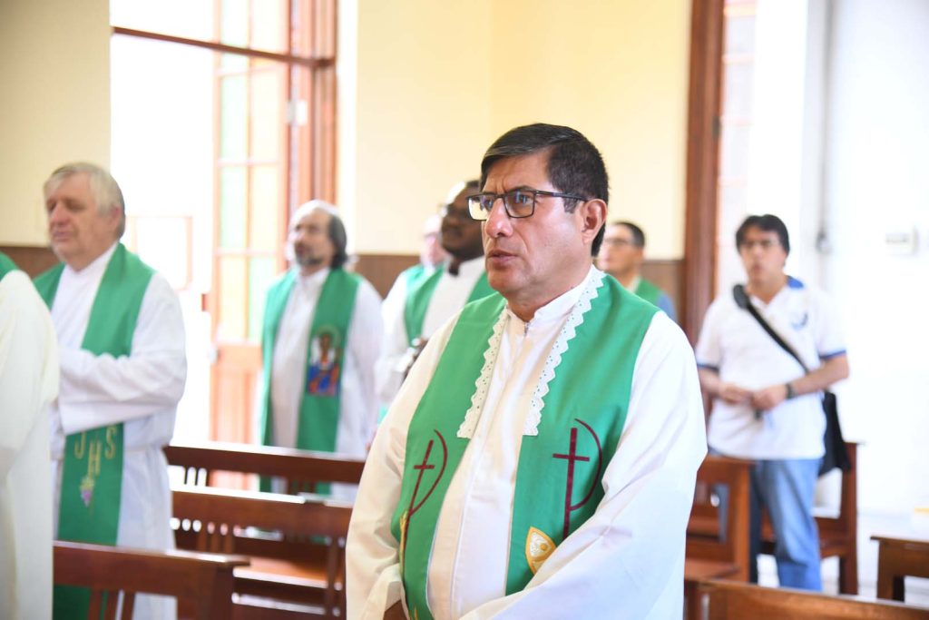 En este día inaugural, el P. Inspector, Juan Pablo Alcas, durante la Eucaristía, celebrada en la capilla Don Bosco, nos muestra a través del Evangelio la vocación a la que está llamado todo director salesiano: la administración de la comunidad salesiana con la justicia que viene de Dios. «La verdadera justicia no puede existir sin la misericordia», enfatizó.