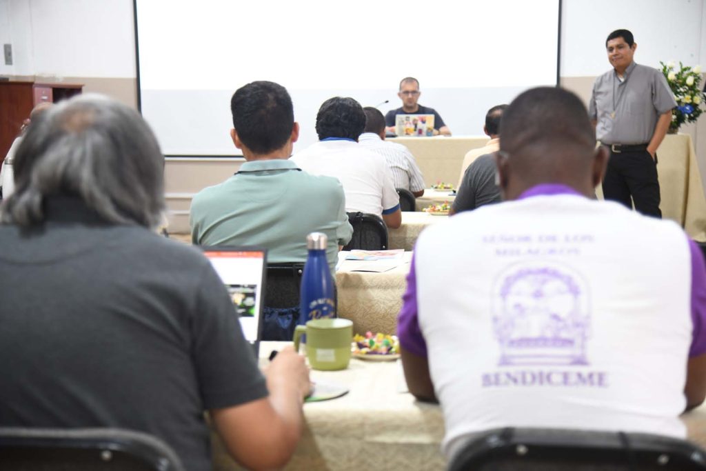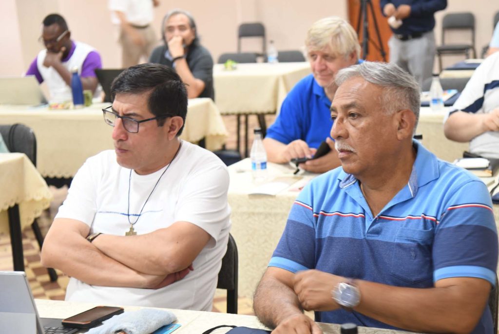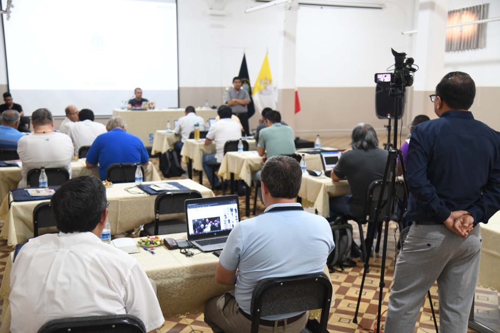 Instalados en el Salón «Zatti», los directores de cada casa salesiana, en un primer momento, compartieron sus experiencias, retos y desafíos que encontraron durante este tiempo en su comunidad. Este momento de bienvenida y reflexión, estuvo a cargo del P. Juan Pablo Alcas, quien expresó su agradecimiento y confianza en el servicio encomendado. Destacó que uno de los principales objetivos es acompañar y dar seguimiento a la hoja de ruta que recibió cada director para animar la comunidad. «Dar seguimiento a las tareas y al desarrollo de sus capacidades», puntualizó. Por otro lado, es un momento de encuentro y fraternidad entre los hermanos salesianos. «Es fundamental trabajar en el desarrollo de sus capacidades, con el objetivo de ayudar a las comunidades. La figura del director representa a Don Bosco, en esa línea cada director debe de ser un Don Bosco en Ayacucho, en Arequipa, en Piura, en San Lorenzo y en cada una de nuestras casas salesianas», expresó