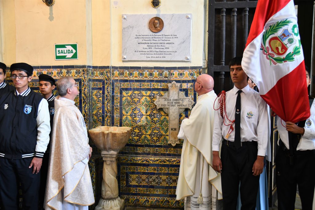 “Estamos aquí en el Sagrario, el lugar donde fue bautizado el Venerable Mons. Octavio Ortiz Arrieta, el primer salesiano de Perú y Obispo de Chachapoyas, un gran salesiano dedicado a su misión con un profundo espíritu misionero”