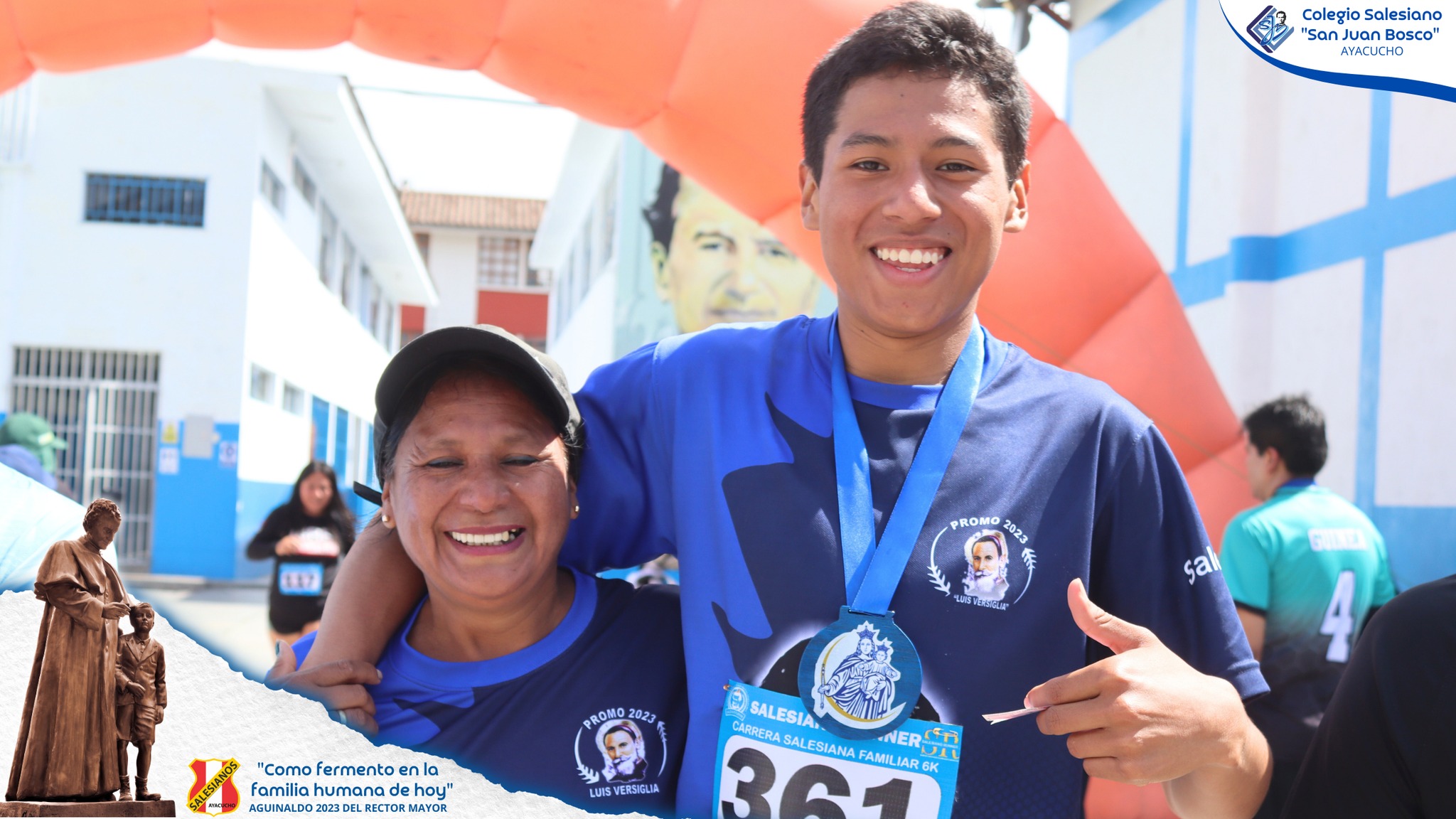 El Colegio Salesiano de Ayacucho celebró la Fiesta de la Gratitud 2023. En la jornada inaugural, el domingo 22 de octubre, toda la comunidad educativa y pastoral: padres de familia, educadores y estudiantes, se unieron para participar en la «II Carrera Familia Salesiana 6K – 2023». Fue una gran jornada familiar, donde la alegría y el deporte brillaron, pero sobre todo se destacó la unión y las muestras de afecto hacia el Padre Domingo Yanqui, director de la Casa Salesiana.