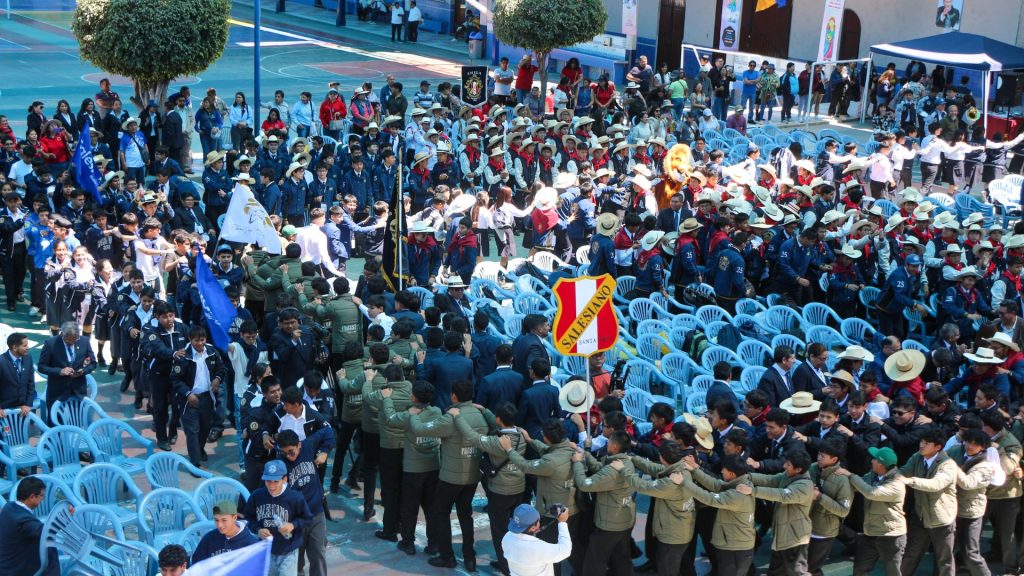 La alegría salesiana también se desbordó en cada espacio compartido: el talento de los jóvenes brilló en las noches de canto y danza, la fraternidad se consolidó en el paseo campestre bajo la mirada majestuosa del Misti, y la clausura fue un estallido de colores y emociones, con las escoltas desfilando con orgullo y una festicomparsa que llenó de vida y música las calles arequipeñas, convirtiendo la ciudad en un verdadero patio salesiano abierto a todos.