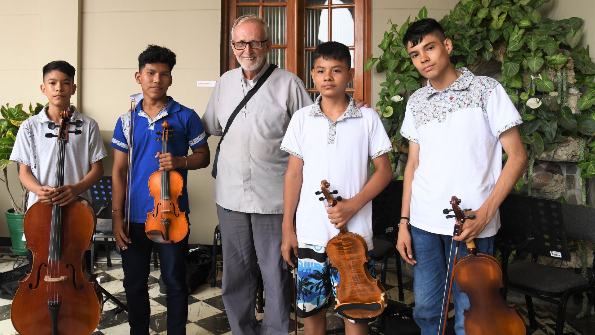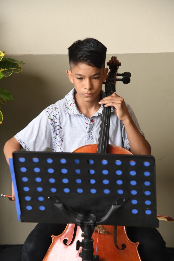 Giacomo, Abraham, Salvador y Stalyn, adolescentes de entre 13 y 16 años, representan el fruto de este proyecto, el cual el Padre Cayetano lidera con mucho amor. Ellos estuvieron en la Inspectoría Santa Rosa de Lima para deleitarnos con su arte y talento. “Estos jóvenes tienen 3, 4 años de práctica y, por lo tanto, han llegado a un cierto nivel. Por eso hemos visto muy útil viajar a Lima para que logren profundizar el aprendizaje y abrirse nuevos horizontes”, expresa con alegría el Padre Cayetano