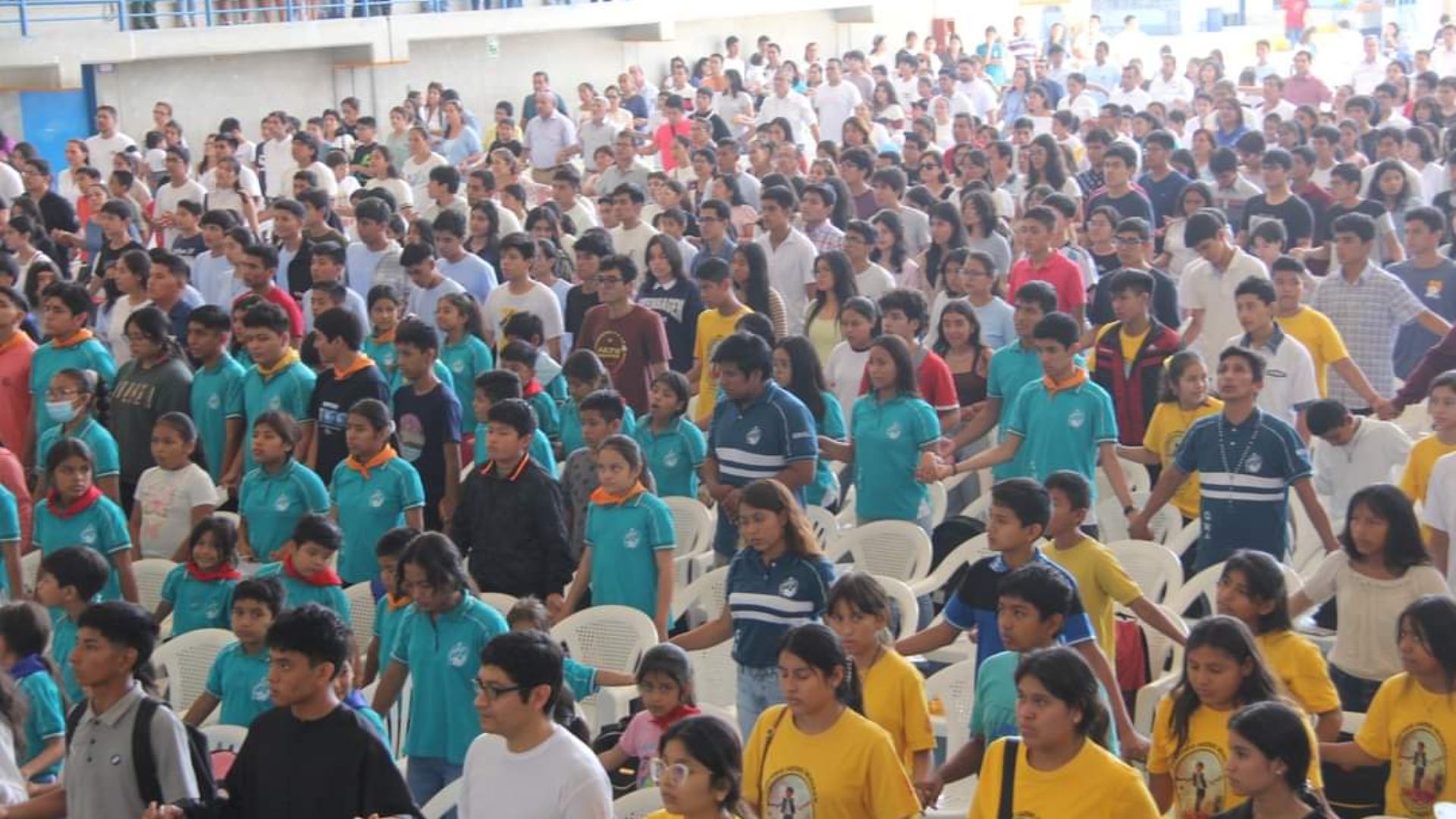 Tras su llegada al patio techado el féretro fue ubicado en un espacio especial cerca al altar. Luego de unos minutos, inició la Eucaristía juvenil presidida por nuestro querido P. Jesús Jurado y concelebrada por el director, P. Dante Mendoza. Participaron los niños y jóvenes oratorianos de Tacalá, Cossio del Pomar, Los Médanos, Templo de María Auxiliadora y Juan Soñador. Además, los grupos de la Catequesis familiar, grupos de Confirmación y Familia Salesiana.
