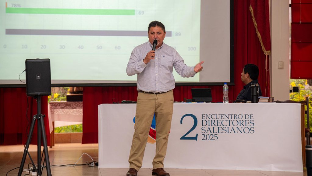 En la sesión vespertina, la presentación se centró en la situación actual de las escuelas salesianas. Se analizó el impacto del liderazgo en el éxito o fracaso institucional, resaltando la importancia del compromiso de los líderes educativos. En esta segunda parte, se presentó el P. Elmer Jaramillo, delegado de la Escuelas Salesianas, junto al Sr. Giovanni Arias: “El liderazgo se ejerce con el ejemplo”, enfatizando que un director motivado inspira confianza en su equipo, mientras que las dudas pueden afectar la estabilidad de toda la comunidad educativa.