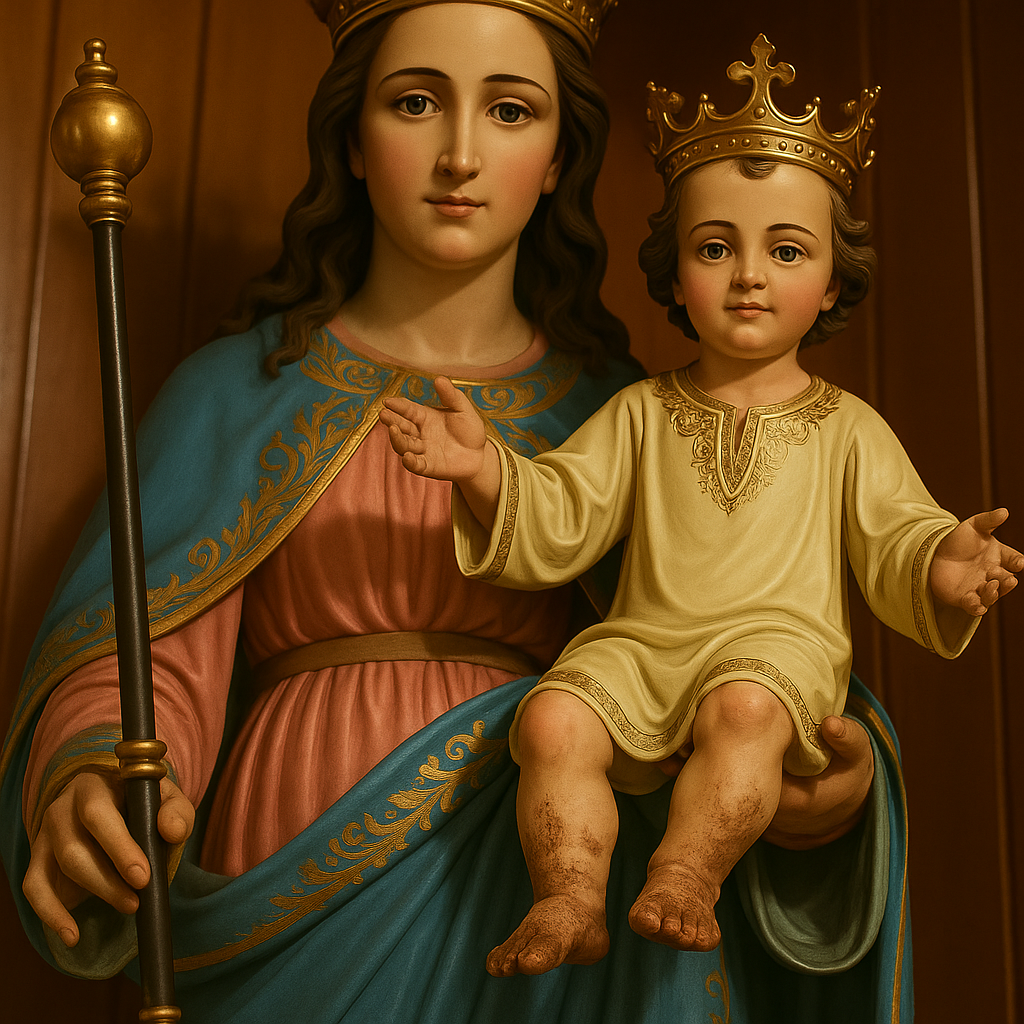 Levantó los ojos a la imagen de María Auxiliadora, la misma que Don Bosco mandó esculpir para que protegiera su obra y a sus muchachos. Pero algo lo sacudió: el Niño Jesús no estaba en los brazos de la Virgen. La escultura, que tantas veces había contemplado con devoción, parecía incompleta. Se puso de pie de golpe, recorrió los pasillos gritando con el alma en vilo: