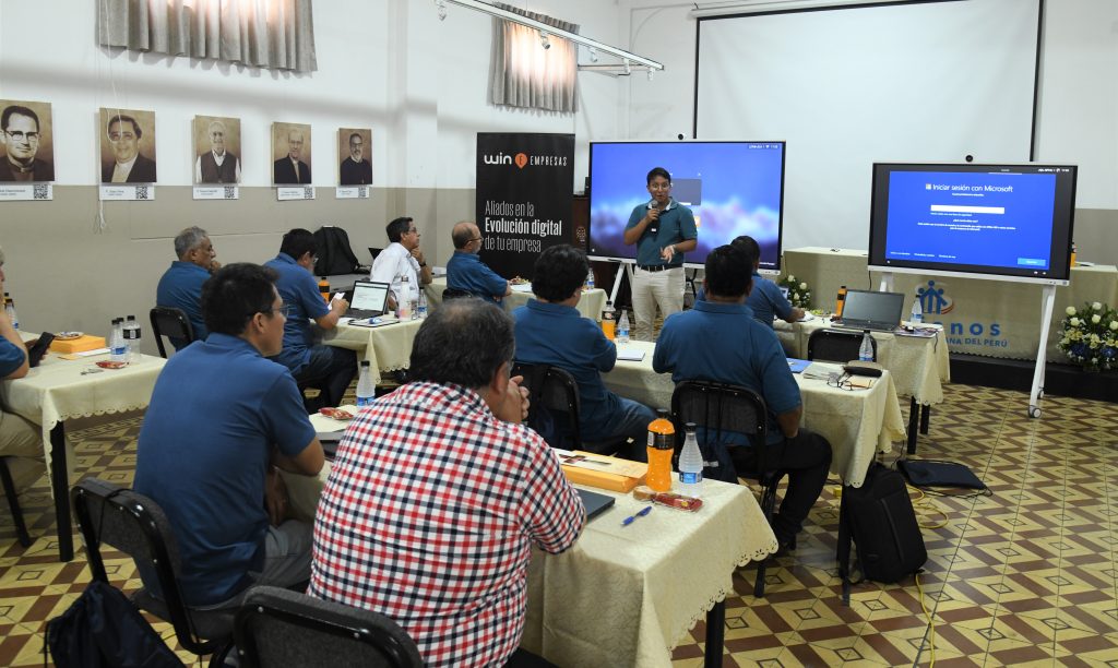 En un primer momento, el Padre Jesús, a manera de reflexión, expresó que hoy en día hay 5 nuevas tendencias de la comunicación digital, que van a permitir una comunicación más rápida y eficiente, permitiendo una mayor colaboración y coordinación en las actividades educativas: Destacan: “Bigdata”, “Video streaming”, “Retransmisiones en directo”, “Content advertising y Content marketing” y la “Realidad virtual”. En esa línea, se hizo presente durante este momento, Raúl Lazo, SubGerente Comercial Corporativo de “Win Empresas”, quien presentó a todos los Directores Salesianos el portafolio de soluciones y las pantallas interactivas “Huawei Ideahub S2”. Dispositivo que reúne, en un solo producto, todas las necesidades que requiere un aula educativa. “Es una tecnología orientada a la educación”, mencionó Lazo. El Equipo del Centro Salesiano de Comunicación gestionó esta presentación, con la finalidad de mostrar las nuevas tecnologías que favorecerán el desarrollo del accionar educativo de las obras salesianas.