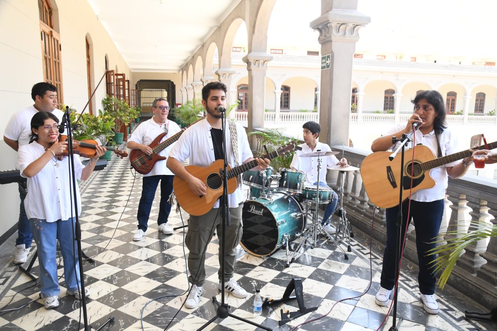 Para cerrar la sesión de la mañana, se proyectó el cortometraje “Sueño.9” y contamos con la destacada presencia de Martín Loyza Valladares, el talentoso cantautor del Himno conmemorativo por el Bicentenario del «Sueño de los 9 años» de Don Bosco: “A despertar». Acompañado por los músicos que participaron en este proyecto, brindaron una presentación en vivo en los ambientes de la Inspectoría.