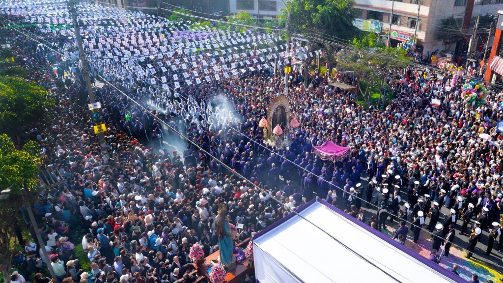 En 2010, el Señor de los Milagros fue proclamado “Patrono de la Espiritualidad Religiosa Católica del Perú” y “Símbolo de la religiosidad y del sentimiento popular”. Su procesión, más que una tradición, es una experiencia viva de fe que cada año une corazones bajo un mismo color: el morado de la esperanza.